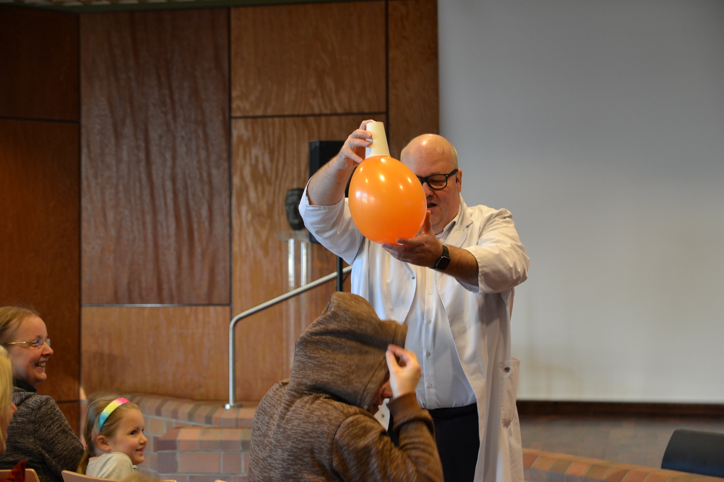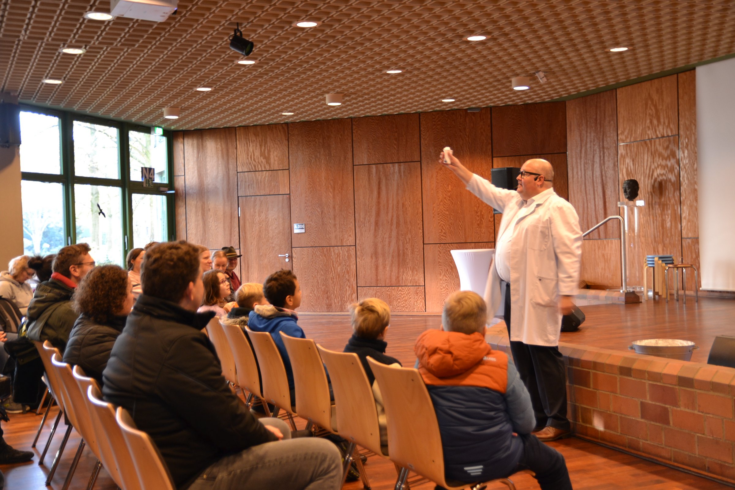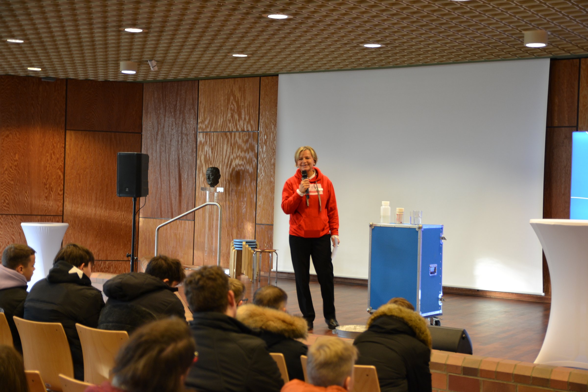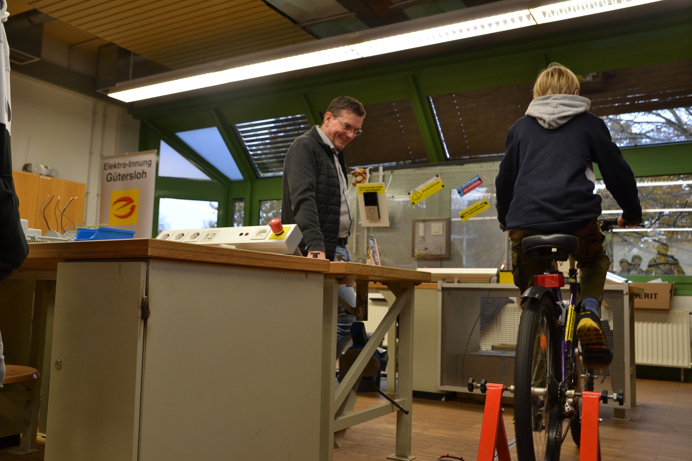 Darüber hinaus präsentierten sich mehr als 50 Ausssteller im Berufskolleg. Neben den Workshops konnten die Besucherinnen und Besucher zudem eine Vielzahl an offenen Angeboten besuchen. Diese Mitmachaktionen wurden verteilt im Schulgebäude und der Sporthalle des Berufskollegs von rund 20 Unternehmen aus dem Kreis Gütersloh und rund 20 weiteren außerschulischen Lernorten und Organisationen angeboten. Abgerundet wurde das Programm von Wissenschafts-Entertainer Felix Homann, der mit Experimenten für Staunen im